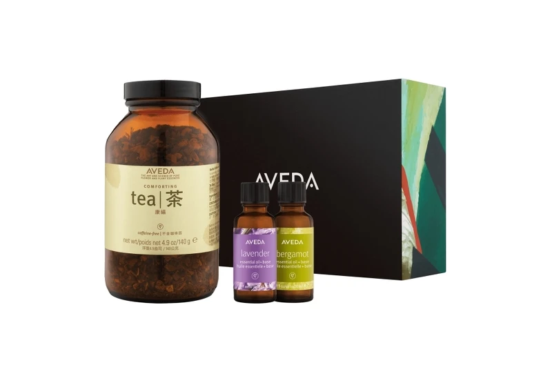 康福茶以甘草根、薄荷葉、羅勒葉及茴香調配而成,潤喉爽口,自然回甘。搭配AVEDA單一香階純香油,創造放鬆舒適的居家好時光