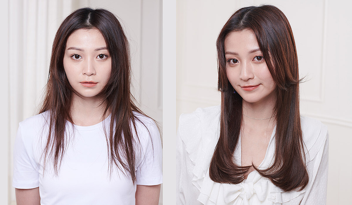 Step2:頭髮中段利用「全新抗毛躁吹嘴」,透過康達效應將健康長髮吸附於表層,把毛躁和長短不一的層次隱藏於下方,利用氣流撫平毛躁髮絲,創造頭髮輕盈柔順的光澤感。