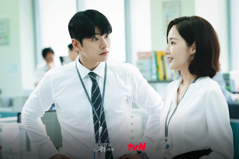 韓系髮型近期強調氛圍感,在《和我老公結婚吧》中以一頭旁分短髮加上微捲的髮尾,呈現出回到過去重生後的知性氛圍。