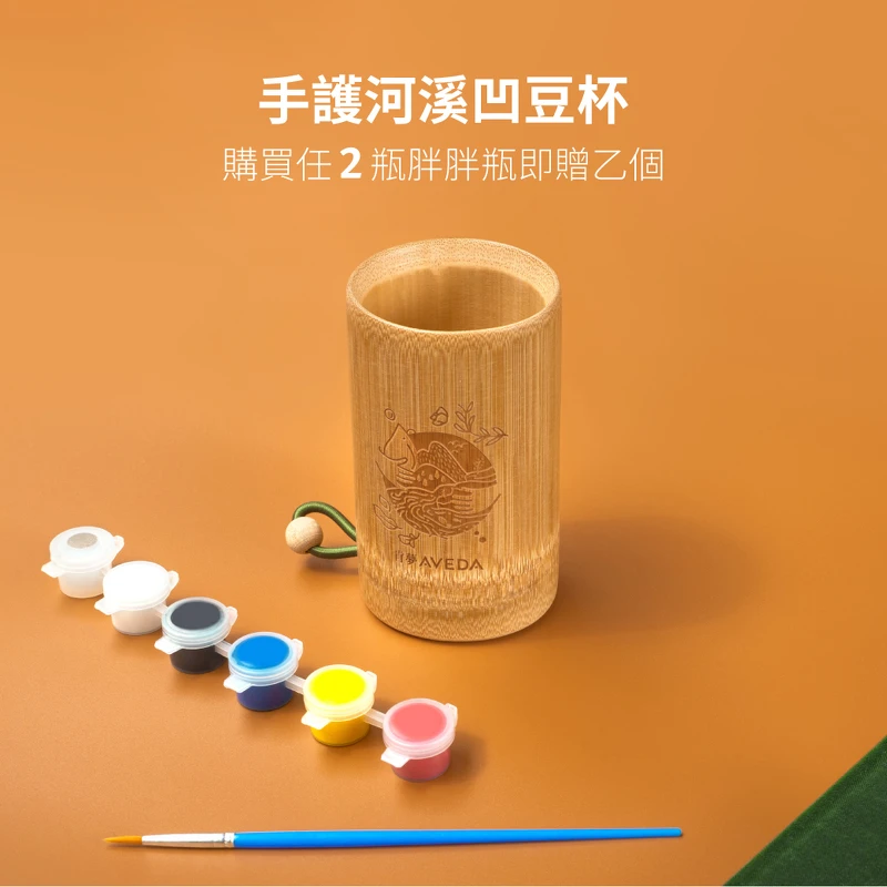 在人類依賴塑膠之前,容器原料大多就地取材於周遭環境,而能快速生長、可自然分解的竹子就是最合適的材質之一。2022年《胖胖瓶減塑回饋企劃》,AVEDA與元泰竹藝社合作推出重量輕巧、扎實耐用的「手護河溪凹豆杯」,無論是到戶外露營親近自然或日常生活使用都十分適合。元泰竹藝社使用100%台灣在地竹材,從環境教育開始支持台灣竹製品產業,致力讓竹製品重新回到生活,落實環保永續觀念。