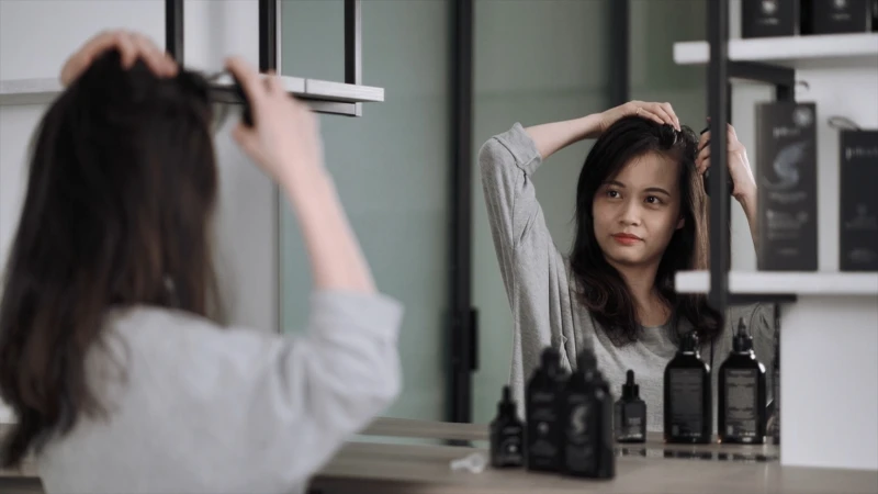 以手指梳髮來測試掉髮狀況,將兩手深入頭髮內側向上拉,每拉一次即掉落3根以上便需開始留意髮肌健康。