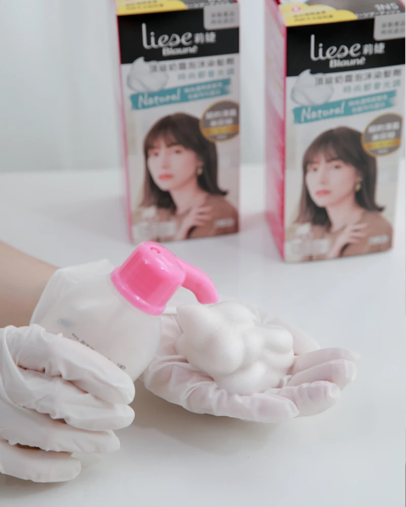 驀曦說:「這種霧感的灰色調,對日常服裝的搭配性超高!有點低調又有點率性,在光線下看還有一點透透的光澤感,超級美的~」讓她力推的一點還有使用方式超簡單!不像傳統的染劑要大費周章自己調,莉婕遮白泡沫染只要把2劑倒在一起來回翻轉均勻就ok了,將綿密的奶霜泡沫從髮根帶到髮尾,就能均勻包覆髮絲完整上色,自己DIY染髮變得超簡單!
