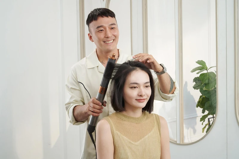 很多人好奇韓國妞為何短直髮看起來不只蓬,還彷彿果凍般有彈性,原因就在自然的髮型弧度,Dyson Airwrap的「40mm髮捲」以氣流將頭髮定型,可以說是為了短髮量身訂做,不需要技巧就能做出鬆軟有彈性的捲度,完美打造溫柔甜美的俏麗髮型。