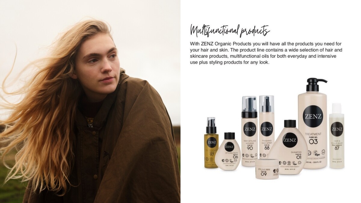 來自丹麥哥本哈根的創辦人安娜索妃・史考・密崙森 (Anne-Sophie Skjødt Villumsen),有感於早期髮品多內含了過多的添加物質,決定開發一系列專業、高天然有機比例,又能有效解決頭皮問題的保養型髮品,因此於1999年創立了品牌ZENZ Organic,從專業美髮沙龍起家,今日已經成為北歐最大的綠沙龍集團,同時是歐洲與英國地區最具規模的永續沙龍保養品牌集團,也是丹麥時尚與演藝產業指定合作品牌。