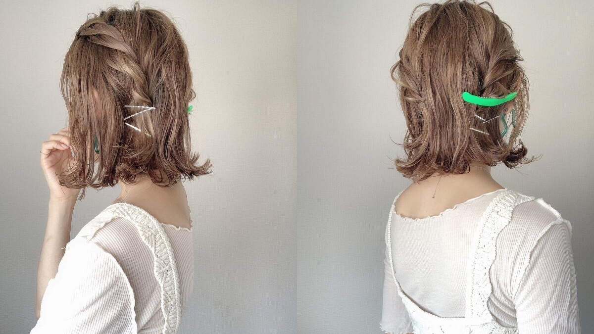 中短髮想做造型怎麼辦?沒有足夠的髮長可以編髮,那就要運用造型感十足的髮夾來完成快速的造型,簡單地抓起兩邊頭頂的髮束,以三股辮的方式往後編,,接著用髮夾固定後再稍微抓鬆一些即可。