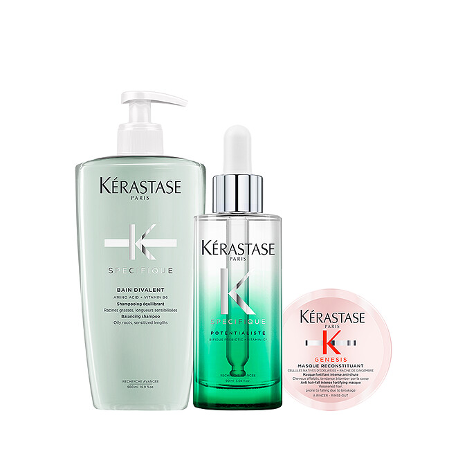 染燙受損髮必備的組合,洗髮精、髮膜、精華一次收入。