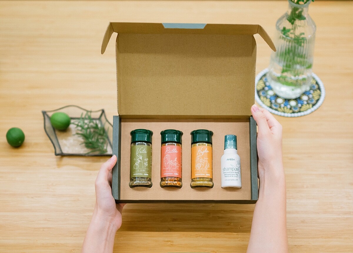 今年週年慶AVEDA不只推出組合,也和小磨坊合作推出預購限量禮盒。肯夢AVEDA × 小磨坊 Dosha豐味禮盒,全臺限量2000份,每組禮盒囊括了「Vata空風、Pitta火、Kapha水土」三款不同風味香料,每一瓶都含有滿滿的元素能量,禮盒中還有最受歡迎的AVEDA純香沐浴乳50ml,萃取自25種純淨花植,交融出讓人感到幸福的恬靜香氣。