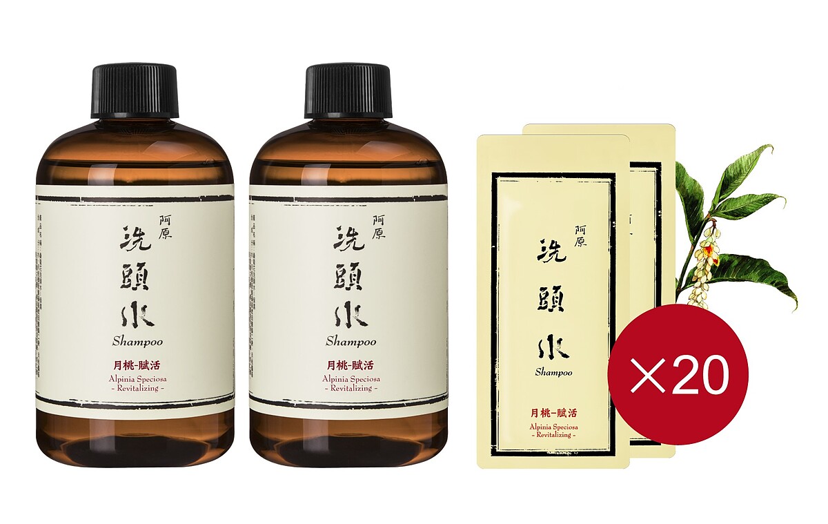 組合包括:月桃洗頭水─賦活 250ml X 2、月桃洗頭水─賦活 8ml X 20包(限量,贈完即止)