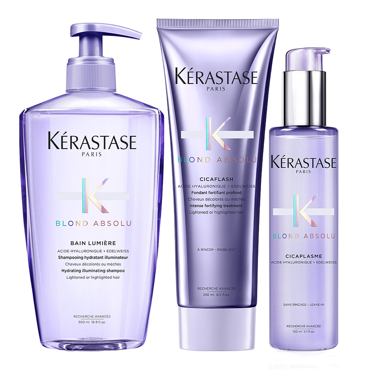染燙受損髮必備的組合,洗髮精、髮膜、精華一次收入。