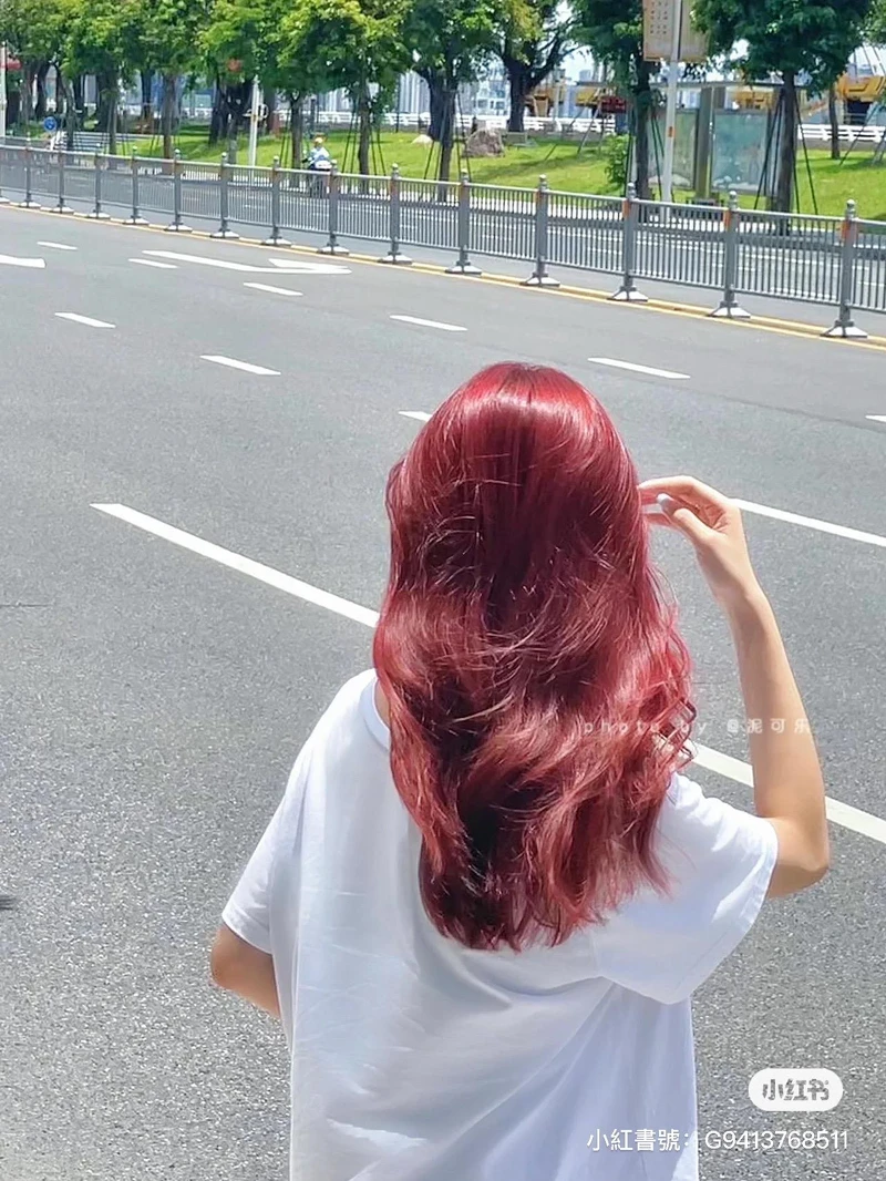 稍微亮眼一些、顯得氣色紅潤的覆盆莓髮色,也是非常推薦的色選,漿果紅色系不會像正紅色一樣鮮豔、高調,給人比較銳利和豔麗的氛圍,反而是帶一點血色的。推薦和棕色搭配調色,偏暖調的粉棕色給人甜美、活潑的感覺,同時也襯氣色、好駕馭。