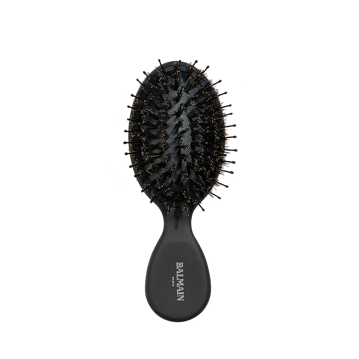 這款Balmain迷你多功能按摩梳適合濃密長髮,梳齒由尼龍圓珠硬毛和100%猪鬃毛製成,有助按摩頭皮以改善血液循環,而猪鬃材質沿頭髮從根部向下運送天然油脂,將塗層鎖在皮脂薄層中,有助於防止捲曲和乾燥。