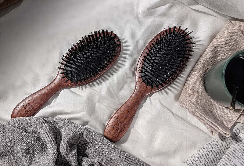 適合髮量較少且細的人,黑馭梳以與人的毛髮結構相似且較細密的純素鬃毛所打造,可迅速撫平毛鱗片、展現髮絲光澤。