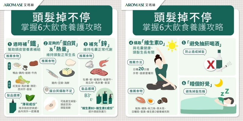 台灣髮品AROMASE艾瑪絲特別邀請程涵宇營養師來傳授頭皮養護飲食秘訣。程涵宇表示,正常人每天約掉落100根頭髮,洗髮和梳頭時會自然掉落,而毛囊細胞是體內分裂最快的細胞之一,高度活躍又敏感,若是營養缺乏,就容易產生頭皮空洞狀況,影響頭髮生長。以下這六點飲食建議一定要注意。