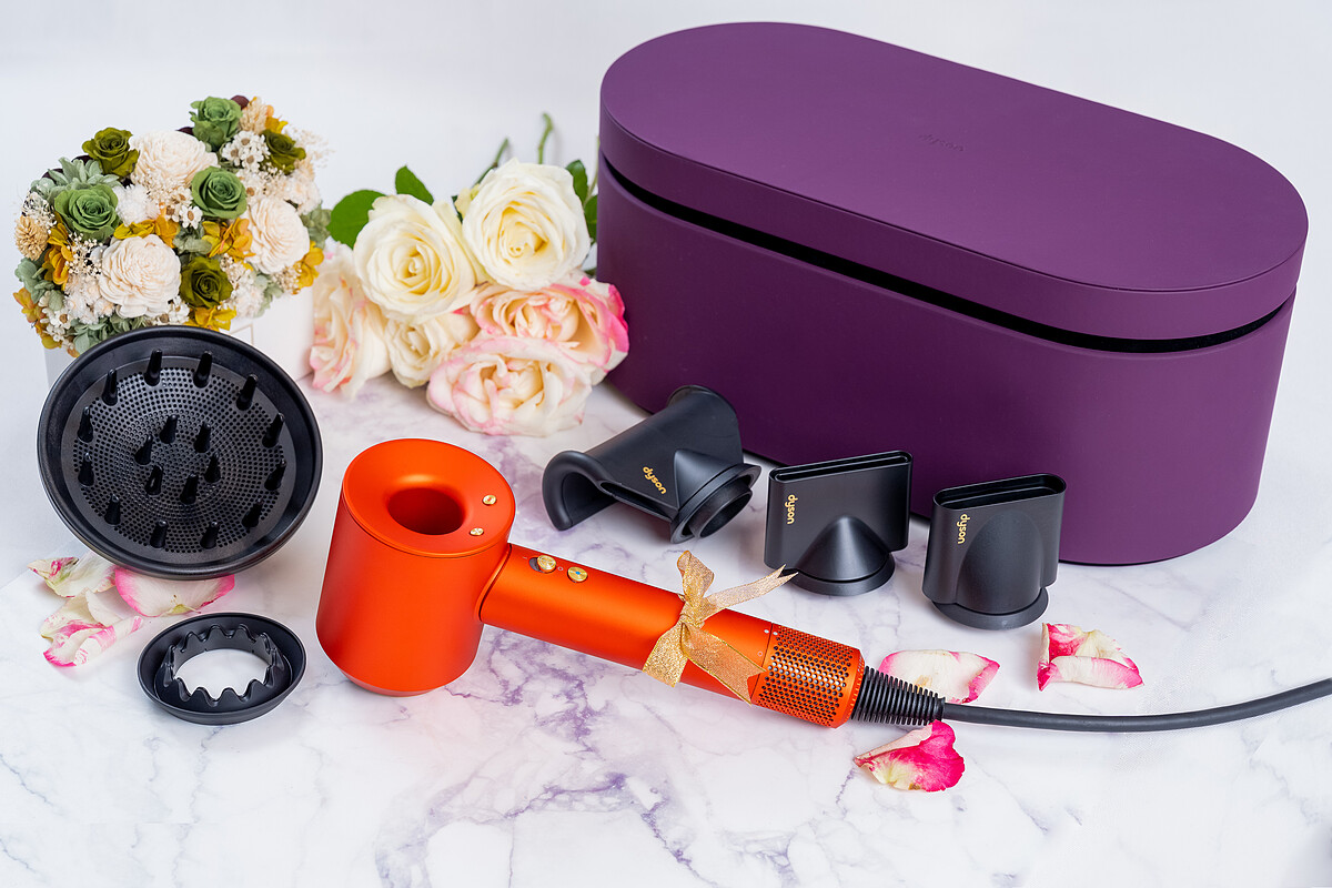 Dyson Supersonic吹風機HD08一直以來都被專業髮型師視為頂級吹風機的殿堂之作,擁有先進的V9數位馬達與氣流倍增技術,既能快速吹乾頭髮、又能智慧恆溫保護髮質,每秒偵測40次溫度不怕過熱傷髮質,輕鬆就能吹出髮絲光澤,染髮還能預防褪色!今年推出托帕石橙紅精裝禮盒,「紅」運當頭的絕美寶石色調,為2023開春注入好兆頭!從機身到握柄換上托帕石橙紅的Dyson Supersonic™吹風機HD08,擺在化妝台都精緻得像個藝術品!多款功能吹嘴更是造型好幫手,無論想要頭皮快乾、造型吹整、吹捲或撫平毛躁通通都能得心應手!