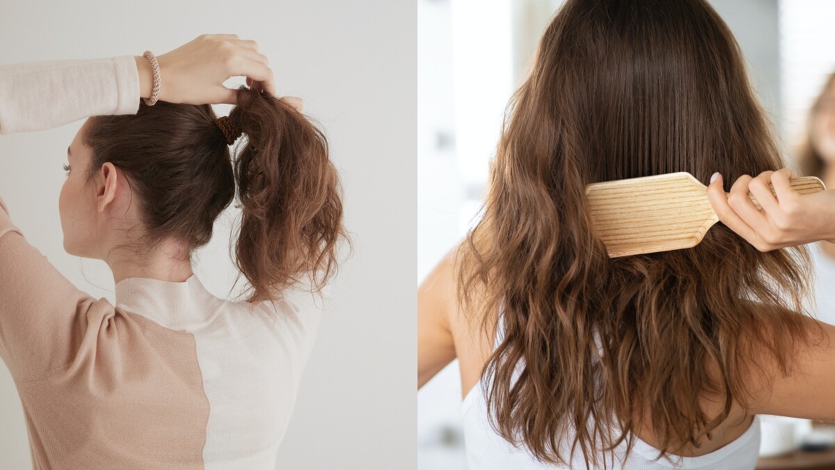 不當拉扯髮絲包括許多面向,像是用力梳開打結的頭髮、固定綁髮位置造成頭皮壓力等等,而每一項也都息息相關。毛鱗片未閉合就容易毛躁、頭髮毛躁就不夠柔順、不夠柔順就容易打結等,除了挑選髮品和吹頭髮之外,在洗髮前應該要先溫柔的梳頭,除了能有效帶走髮絲表面的灰塵和污垢外,也是按摩舒緩頭皮緊繃的壓力;有固定綁髮習慣的人,除了挑選彈性佳且不易咬髮的髮圈,也應該經常變換不同的綁髮位置,轉換受到壓力的頭皮位置,避免損害毛囊造成打結、頭痛。