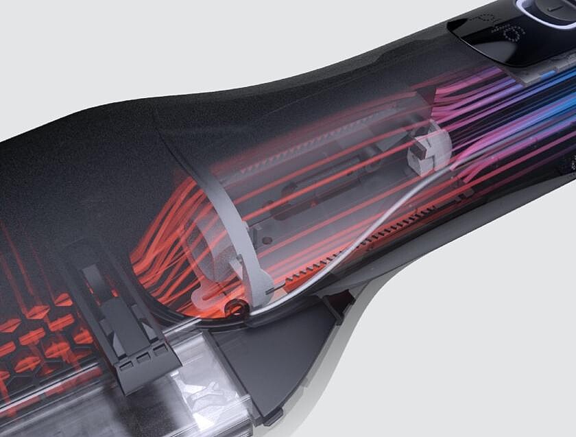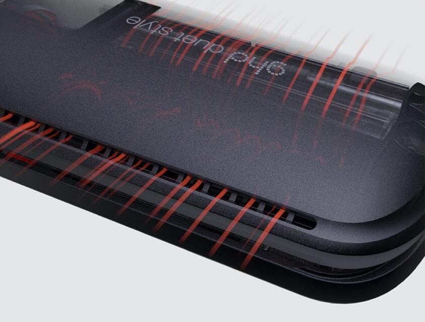 使用與新白金造型夾同等級的Ultra-zone 獨家專利科技,能精準偵測頭髮所需溫度微調,讓整套面板系統均勻受熱且維持在最佳吹整及造型溫度;同時在師髮時也根據從面板上被吸收的熱能來判斷頭髮中的水分含量,不斷微調成最佳吹整溫度,在快速吹乾頭髮的同時,依舊保有髮絲健康。