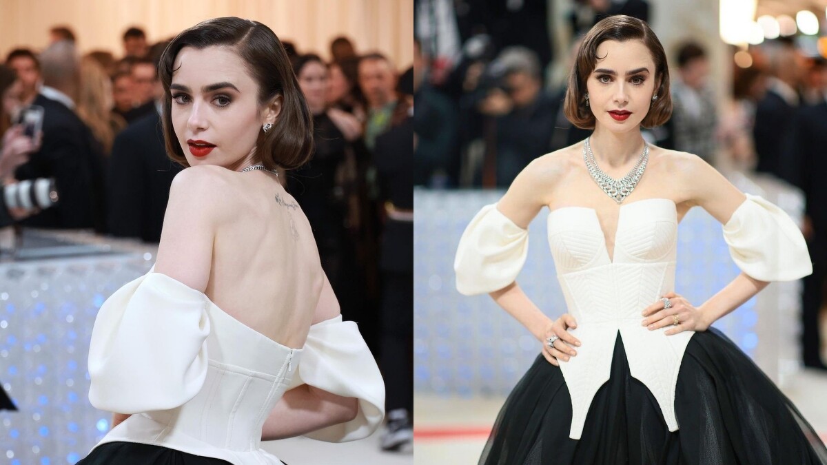 擁有「時尚甜心」稱號的莉莉柯林斯今年以一頭復古的短鮑伯頭登場,經典的鮑伯短髮配上油頭造型,加上髮尾、瀏海的微微捲度,在妝容上搭配亮眼又襯膚的紅唇,呈現復古女伶的造型感。