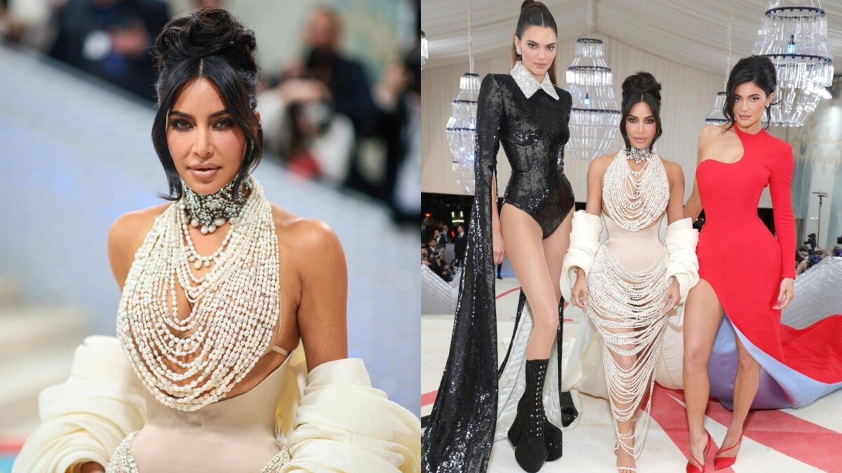 前陣子宣布要演出《美國恐怖故事》第12季的金卡戴珊和妹妹們連袂出席,金卡戴珊以一席Daniel Roseberry設計的珍珠禮服登場,同樣是以高顱頂的盤髮髮型登場,和安海瑟薇的公主頭不同,金卡戴珊將黑髮全部盤起,留下臉側的瀏海並加上自然的波浪。