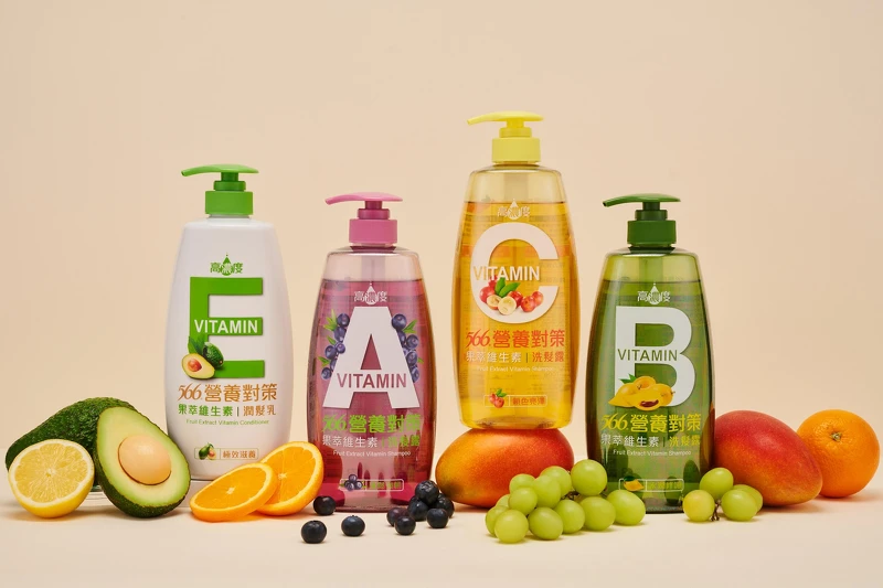 「營養到位,頭髮就不怕你虐!」566全新營養對策洗潤系列,添加「高濃度果萃維生素」,彷彿是給頭髮與頭皮吃的超級食物!推出維生素A、B、C 3款洗髮露+維生素E潤髮乳,補足秀髮滿滿豐沛營養素!核心成分採用瑞士專利葡萄籽精粹維生素E,能激活髮肌、啟動營養吸收管道,再依不同髮況補充各種天然果萃維生素+護膚級成分,「補對營養」就能有感強健髮根、改善出油、活絡髮肌!如空氣般輕盈綿密的泡沫,為0矽靈、弱酸性pH值胺基酸配方,能溫和清潔髮肌髮絲,留下清爽淨透同時為秀髮營養滿血補上、重啟活力能量!