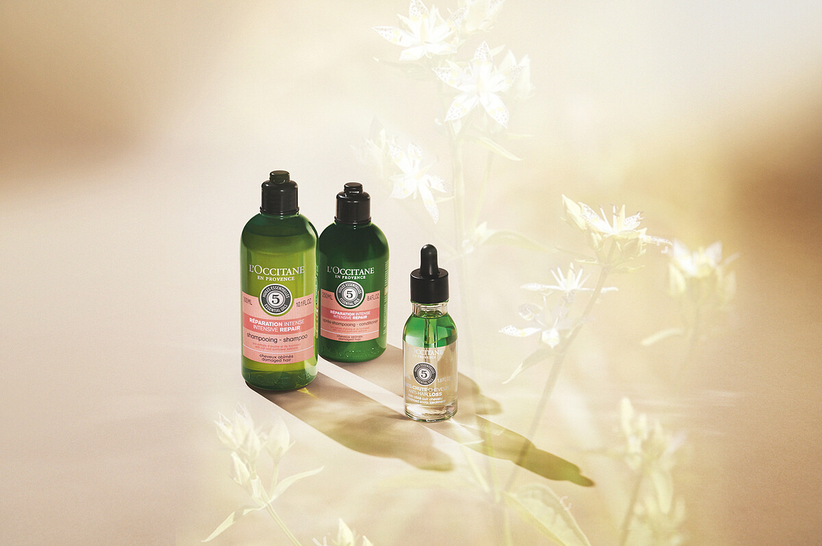 歐舒丹草本髮品系列擁有一派忠實擁護者,運用天然植物成分打造豐盈秀髮,他們將植物精華油運用於頭髮護理,揉合5種草本精華油獨家配方,推出草本精華油頭髮護理系列,最近加入新成員:草本豐蘊養髮精華。