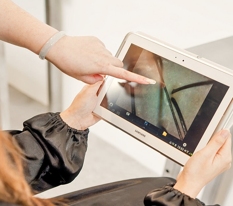 今年Hair Rituel 髮肌智慧健檢全新升級,二代專業智慧髮肌檢測儀⽤超精密光學傳感器觀察髮肌 (110×) 和髮絲纖維 (900×),解析度更高帶來更精確的頭髮密度,讓結果更準確可靠。搭配全新的皮脂試紙,能讓髮肌師透過皮脂試紙檢測結果判斷顧客的頭皮出油程度,從非常乾燥、乾燥、適中、出油、非常油都能一測得知。根據檢測結果,再於平板上選擇與上述五種類型最接近的皮脂分布狀態,精準紀錄頭皮狀況。
