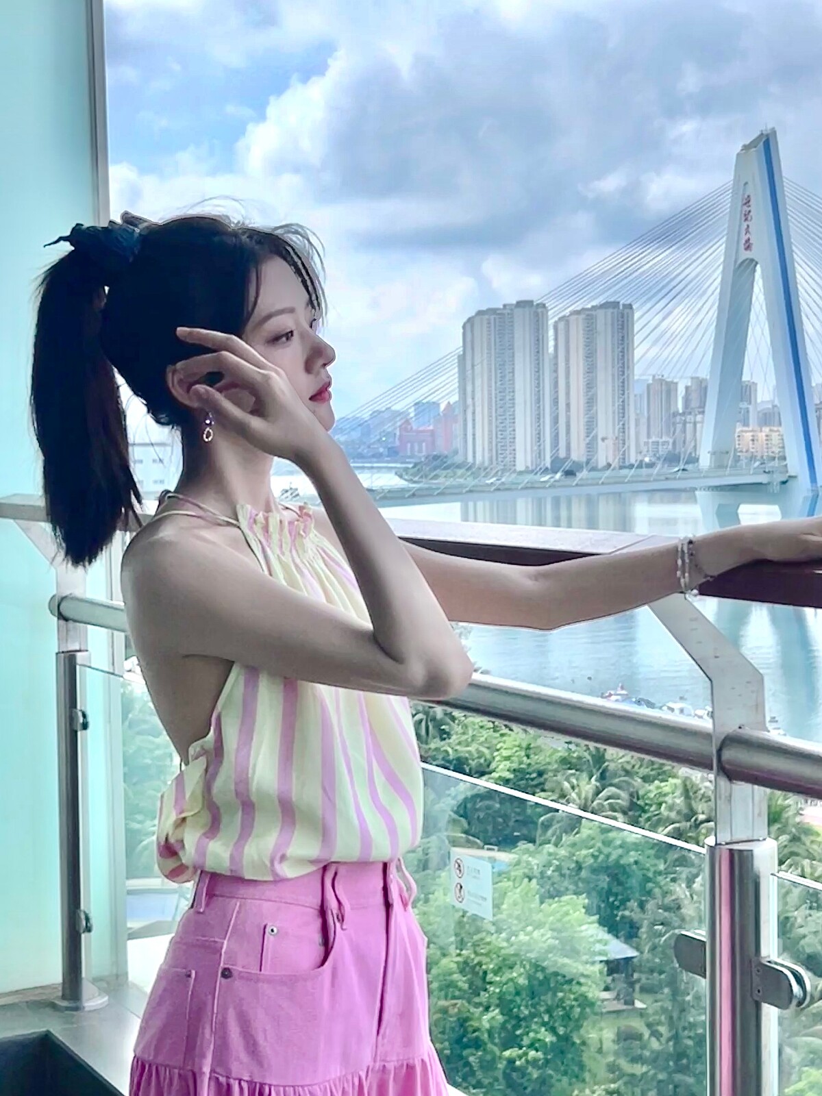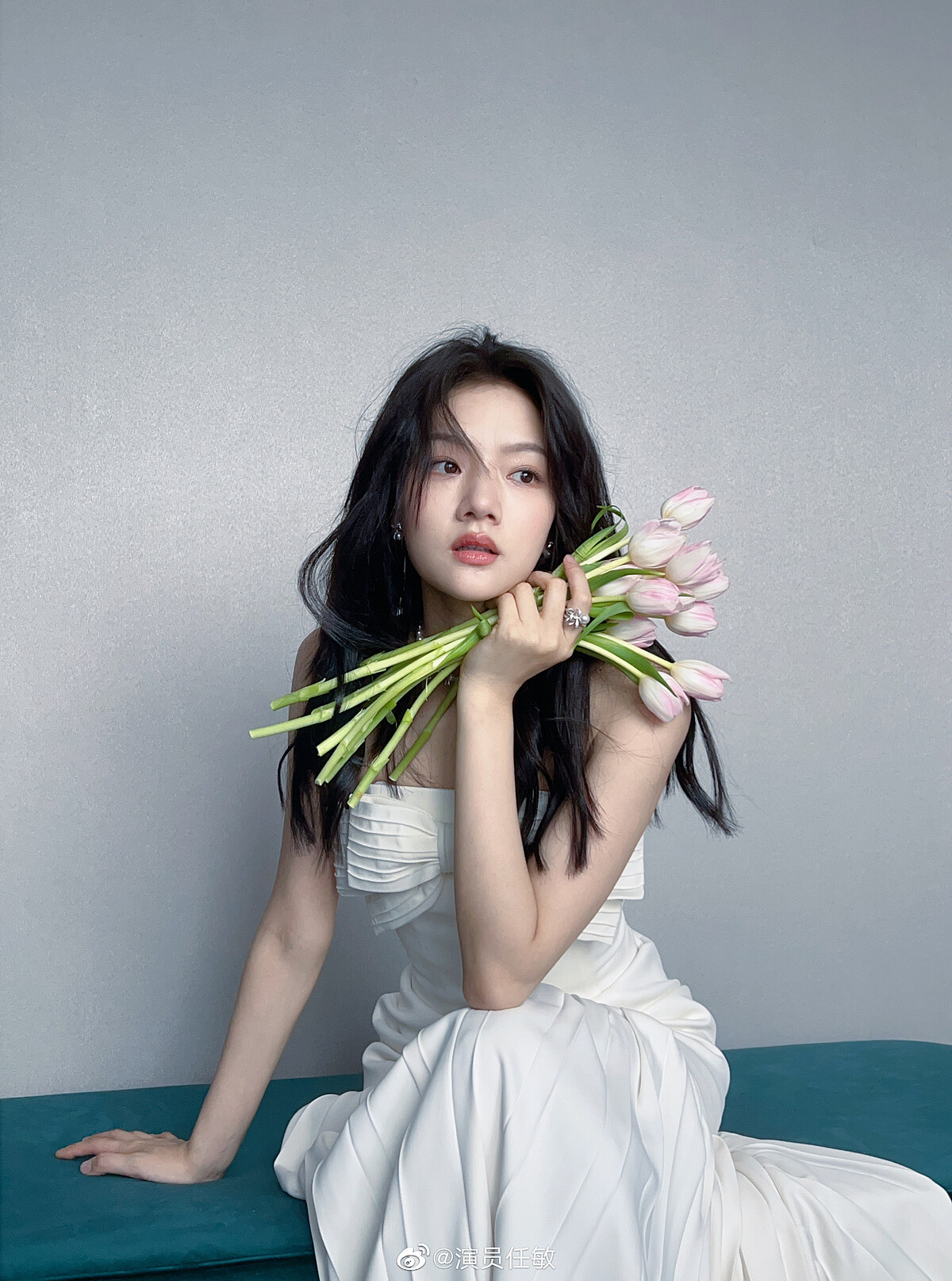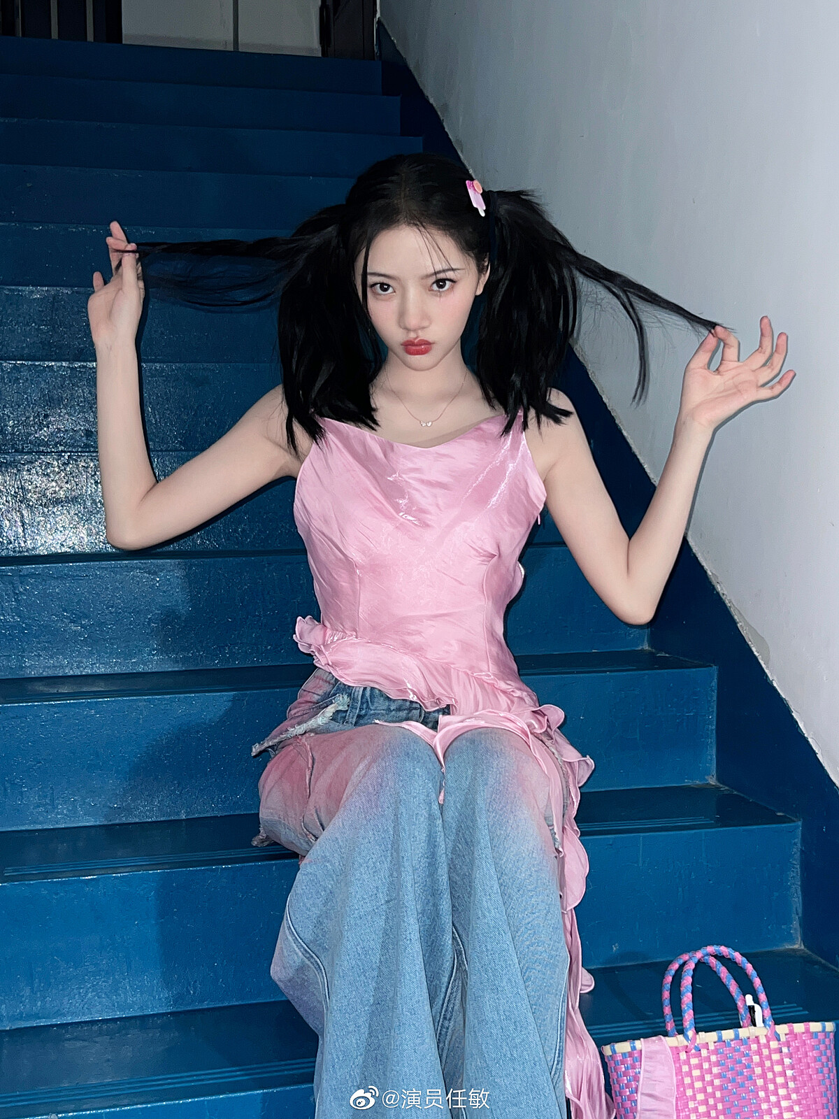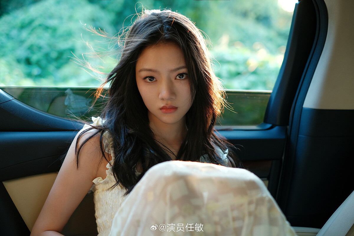 其實從以下這張照片就能看出來,任敏的臉型屬於上寬下窄的倒三角形,且顴骨、下顎線條的稜角較為明顯,臉部寬度最大的位置就在顴骨,而劇中短瀏海長度落在眉毛左右,恰巧凸顯了這一點,每個人的骨骼、臉型都不一樣,加上拍攝也會有放大的效果,老實說短瀏海髮型確實對任敏來說較為不利。
