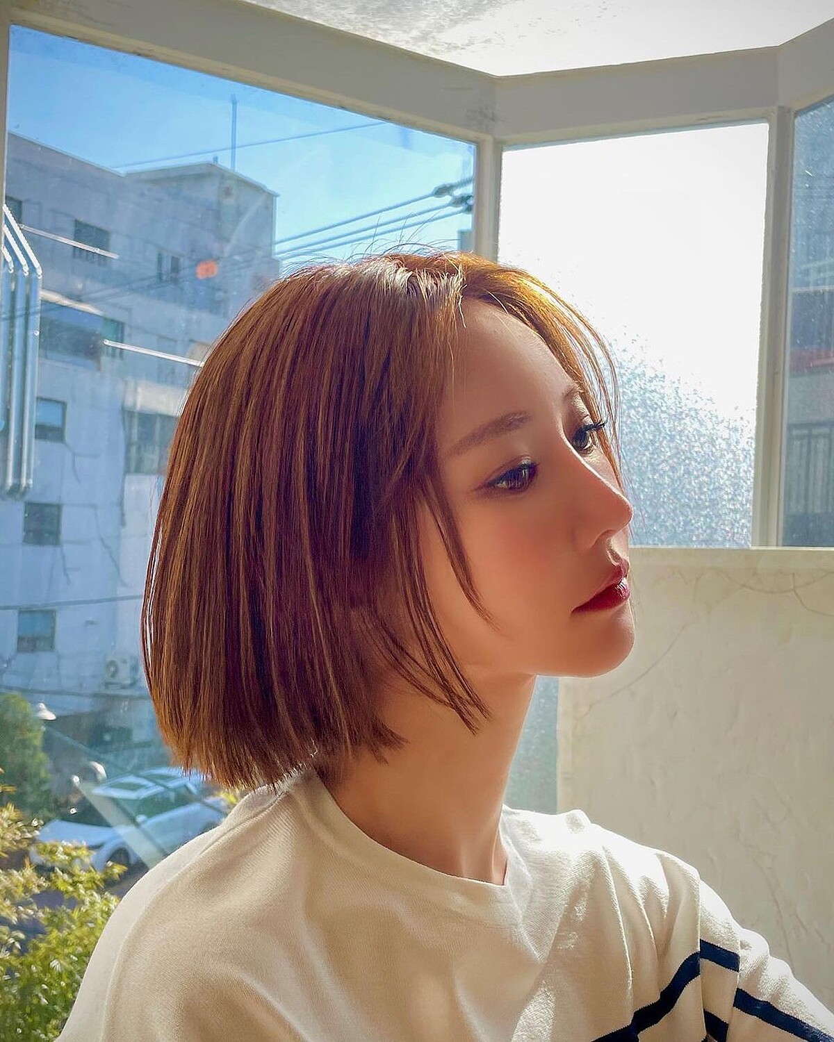 看似是齊短髮的造型,其實在髮尾有些許層次,讓造型多了一些空氣感,整體會比較輕盈。