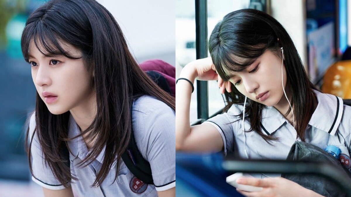 長以旁分、中分造型為主的高允貞,也少見的以瀏海造型登場,配上原生感的中長髮,今年27歲的她演出高中生毫無違和!
