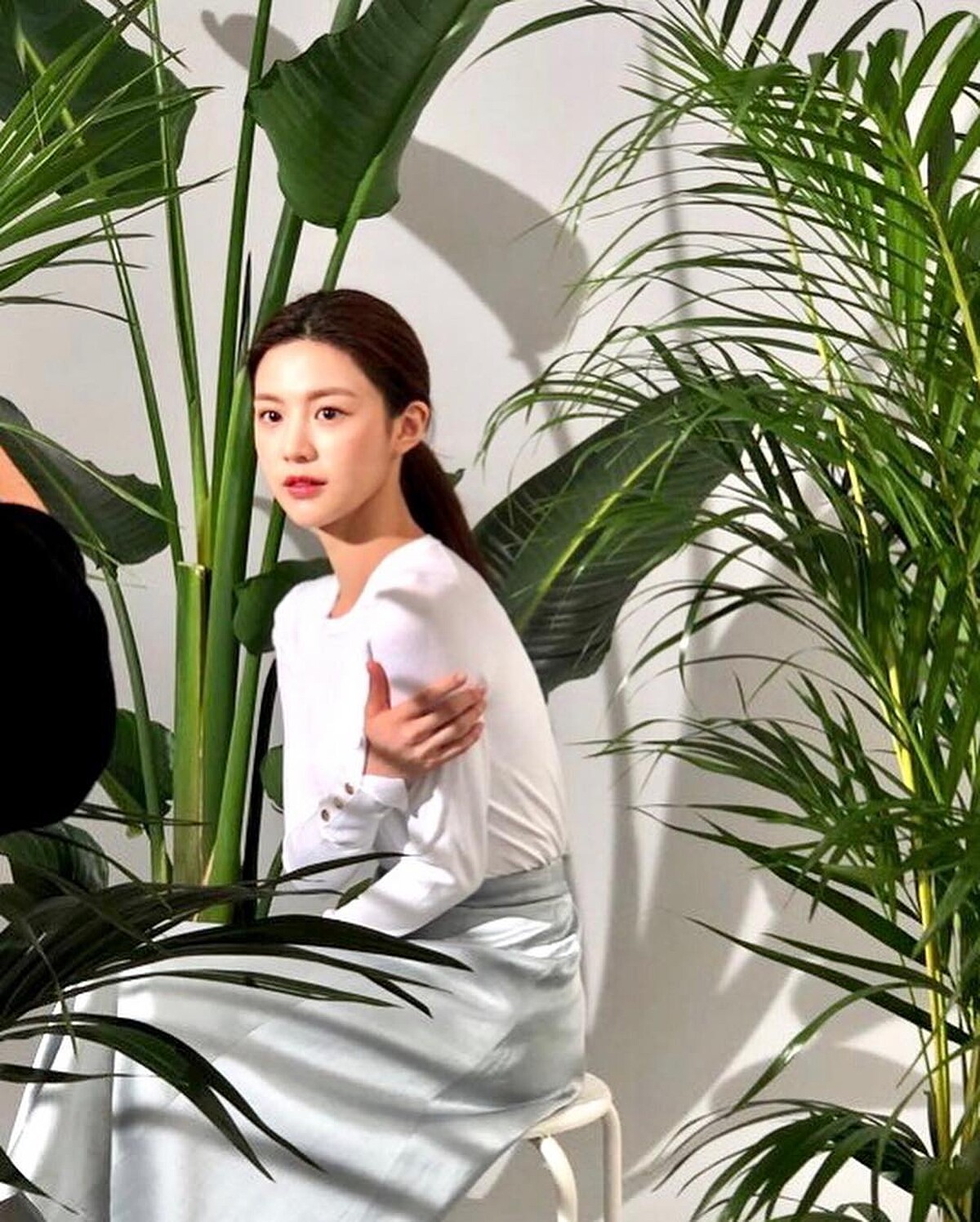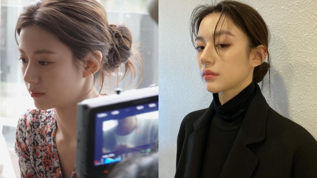 高允貞曾經練習多年芭蕾舞蹈,看著他綁上低包頭的樣子彷彿可以看到穿著舞衣的她,也因為高允真的髮量相當豐厚,綁起低馬尾超有份量感,蓬鬆的髮際讓這個髮型帶有些許隨性,同時也很修飾臉型。