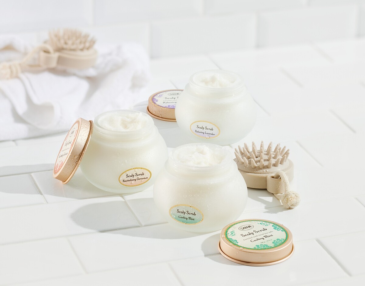 今年9月Sabon死海鹽頭皮磨砂膏全新升級,嚴選三款有機精油:薄荷、薰衣草、天竺葵加入頭皮磨砂膏,分別針對清爽涼感、舒緩敏弱、賦活 強韌,讓不同的頭皮獲得不同的最佳潔淨效果,成分、效果更優秀。
