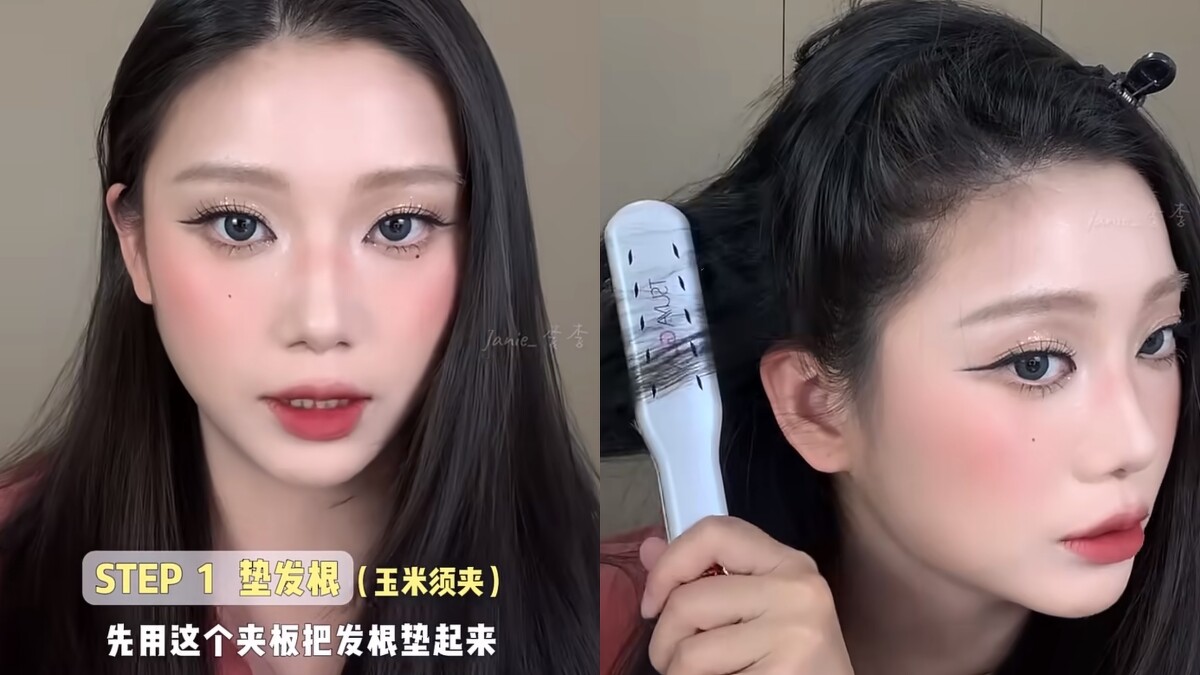 首先如果想要髮量看起來更豐厚,可以使用波浪夾板讓接近髮根的髮絲有一點波浪,整體看起來髮量會更豐厚,如果本身髮量比較多的人也可以直接進下一個步驟。