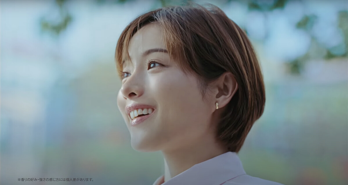 又或是在銀行信用卡廣告、花王衣物香氛產品的廣告中,石原的髮型都是很值得參考的自然感短髮。