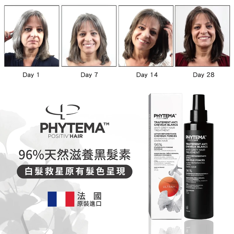 而想找回原生髮色的關鍵,就是做好頭皮保養護理!就像沒有健康的土壤怎麼養出茂密的樹林,來自法國實驗室的研究與創新,PHYTEMA「賦黑強健活化精華」以漸進式修復,讓秀髮呈現自然色澤,精華中的天然植物提取物與維生素濃縮物結合能強化滋養髮根,同時保濕及增添髮色光澤,透過28天的密集修復、調理頭皮與秀髮,漸漸由髮根呈現自然的深褐色,PHYTEMA溫和的養護式賦黑能徹底照顧頭皮與頭髮的健康,讓你徹底遠離白髮、擁有烏黑秀髮,不必再靠染髮也能呈現強韌的原生髮色!
