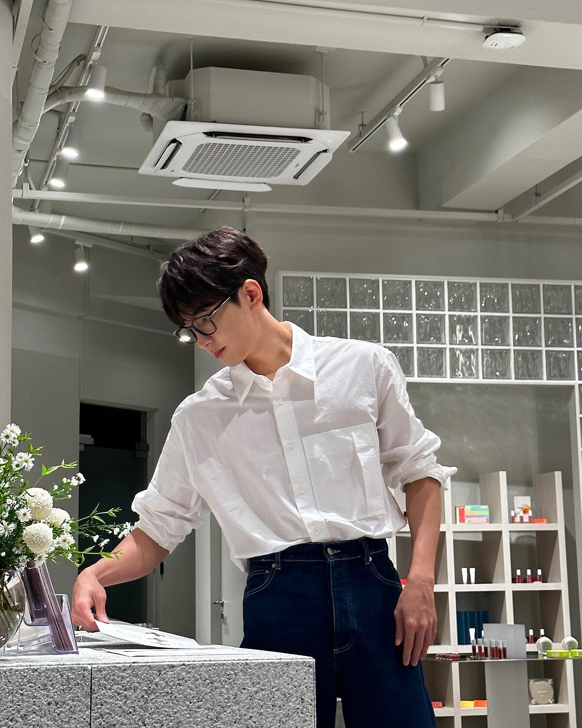 清爽的短髮露出額頭,讓圓佑整體呈現出更銳利的氛圍。
