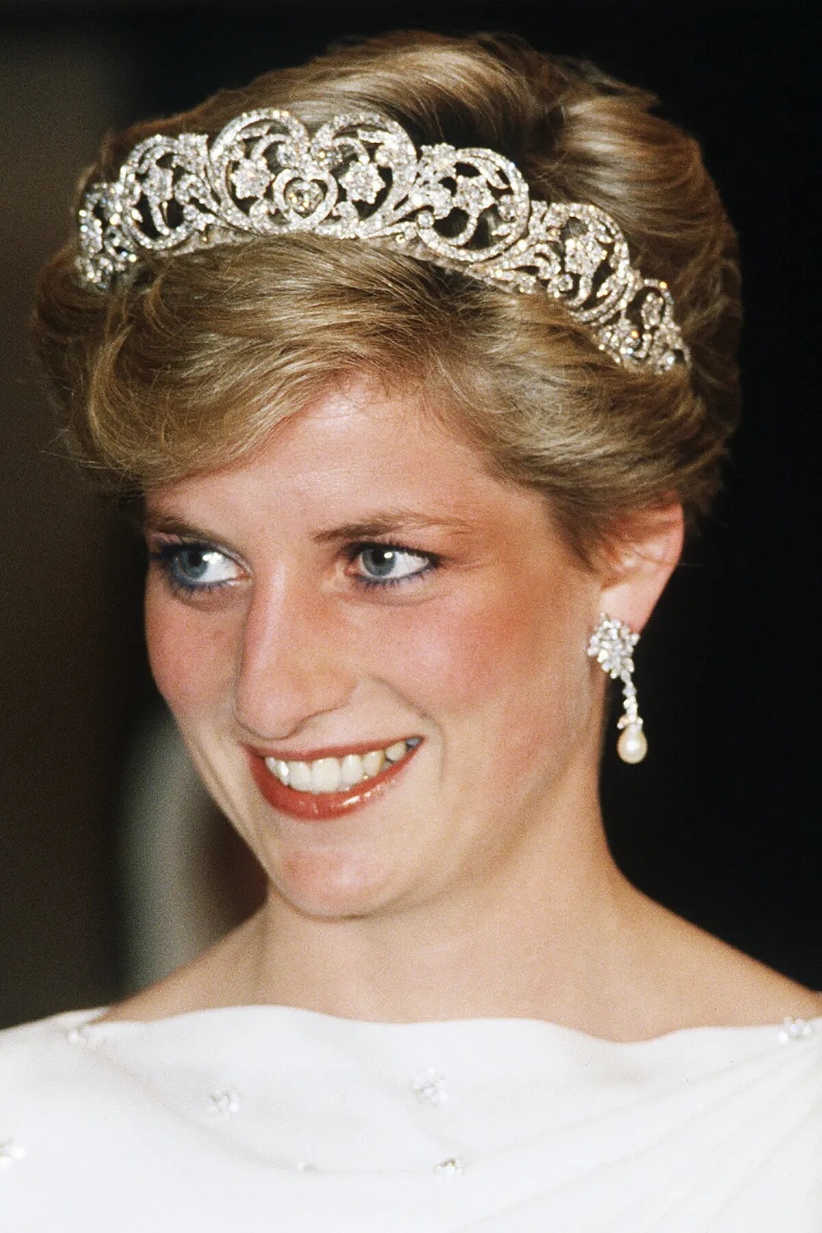 不論什麼髮型,都比不上優雅的盤髮,黛安娜王妃的髮絲總是充滿健康的彈力、光澤,對許多人民來說,在黛安娜王妃頭上的皇冠就像是蛋糕上的櫻桃,是錦上添花罷了。