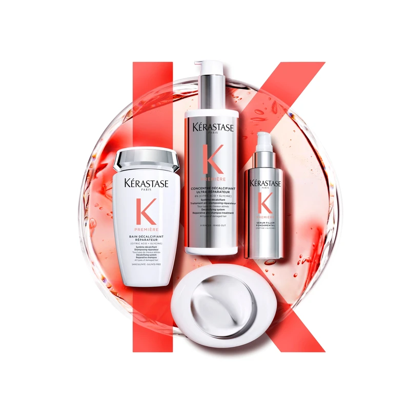 針對這個狀況,KÉRASTASE巴黎卡推出白鑽升肽重建系列,以雙重修護科搭配檸檬酸和甘氨酸的絕佳比例,打造全系列包含髮浴、髮乳、髮膜和重建熱活精華,其中還有此系列獨有全新的重建超前導精華,全系列主打能針對秀髮進行除鈣處理,更能透過幫助重新連結髮絲角蛋白鍵來修護髮絲。