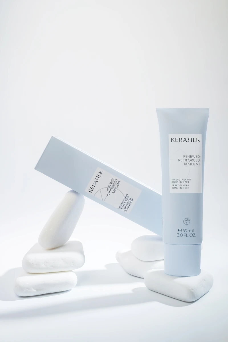 針對嚴重受損髮絲,KERASILK 絲馭洸推出免沖洗的護髮產品髮繃帶重建乳,主打運用鍵結醯胺(BONDAMIDE)強化髮絲內部的結構。鍵結醯胺能在髮絲結構內部建立新氫鍵和鹽鍵,使其髮絲回復到健康有彈性的最佳狀態。