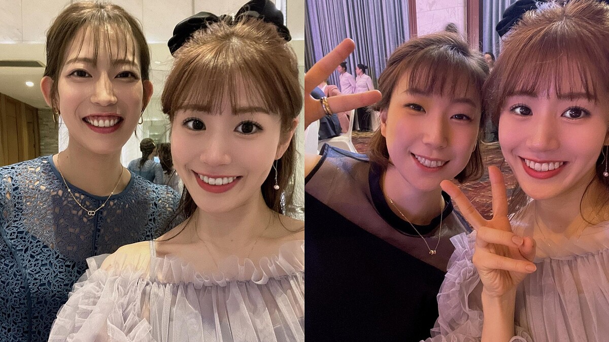 - 02. BB夾、壓夾固定碎髮:可以看到志田千陽和夥伴松山奈未都運用大量的壓夾、BB夾加強髮形穩固,尤其是志田千陽因為碎髮比較多,從瀏海到側邊都用了髮夾固定,平時喜歡綁馬尾、包頭的人也可以參考,也是一個造型的方式。