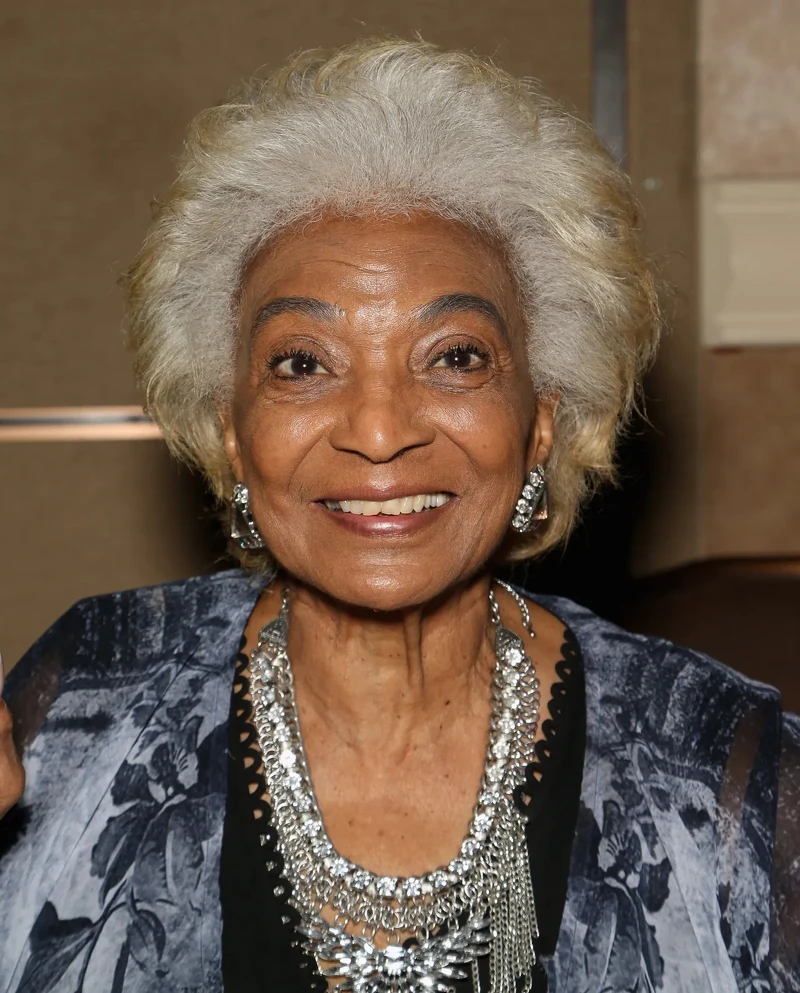 這位《星際迷航》明星(她於 2022 年去世)在這裡看起來如此亮眼,以至於無法將她從這份名單中刪除。同樣,她的頭髮中也有一些帶黃色調的灰白色,再加上增加髮量來增添層次感,這與尼科斯的標誌性造型相得益彰。