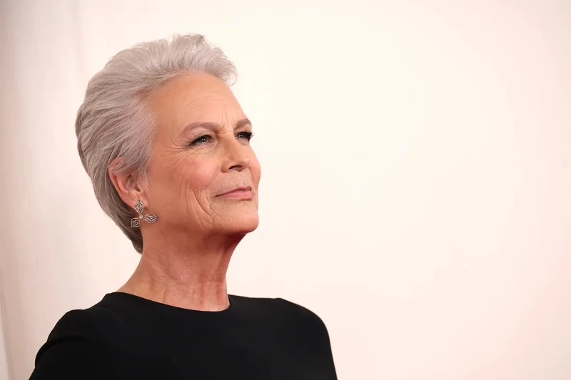 我們這一代最傑出且具有代表性的天然白髮明星之一就是潔美·李·寇蒂斯。她在 30 多歲時開始變灰,到了 2000 年已經完全放棄染髮(這與她強烈且自信的個性相符)。她在 2024 年奧斯卡頒獎典禮上的短髮造型展示了她頭髮中從深灰到白色的各種色調。