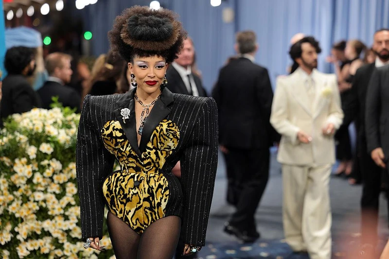 歌手Doja Cat穿上Marc Jacobs訂製西裝登場,搭配蓬鬆的燙髮超級吸睛,展現宛如女王蜂的氣場。