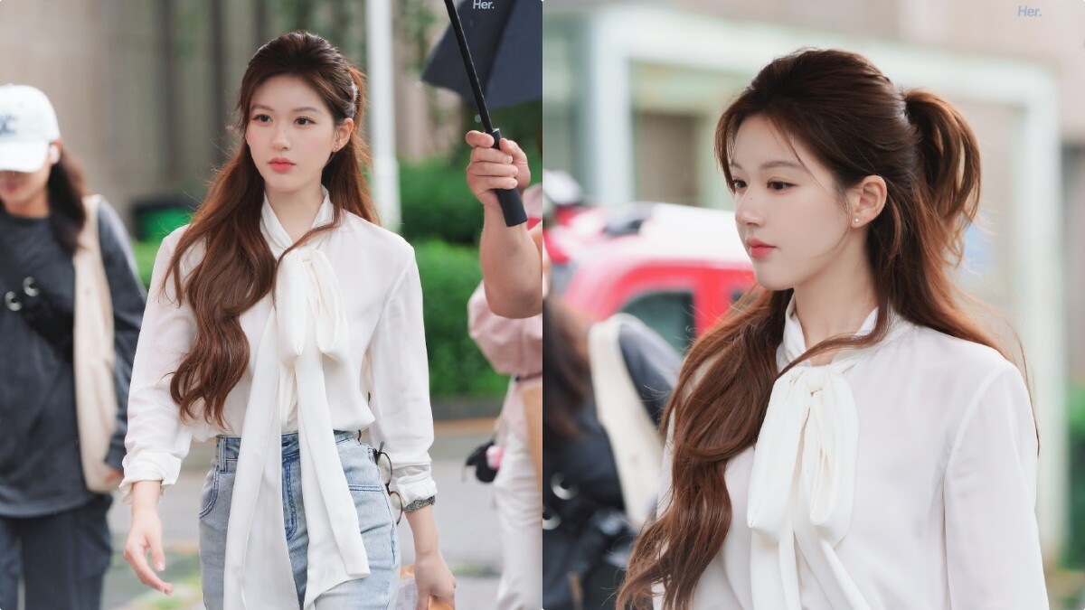 趙露思這款半紥髮巧思十足,在小丸子上方紥起高馬尾,不僅自然托高髮型,還增添層次變化與豐盈感。整體造型溫柔中帶點俐落,無論是上班或日常外出,都非常合適!