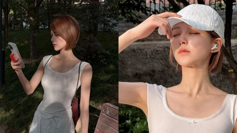 打薄的瀏海搭配耳側髮絲的蓬鬆感,為整體造型注入輕盈感。髮尾以微微外翹點綴,更添少女般的靈動氣息。