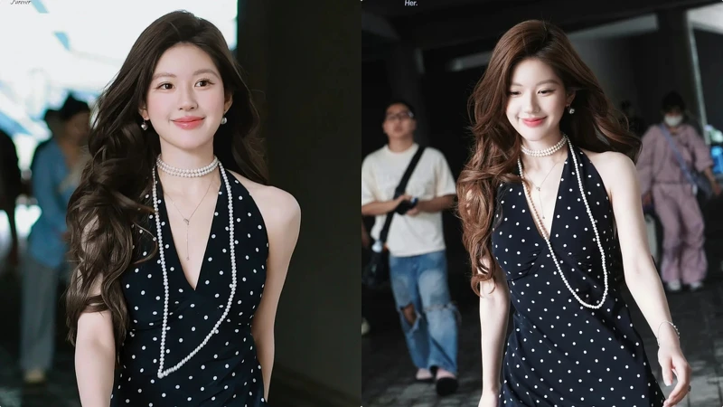 趙露思在即將開播的《許我耀眼》最新曝光消息,一襲深藍底白波點復古長裙,配上波紋長捲髮,展現滿滿法式氛圍感。