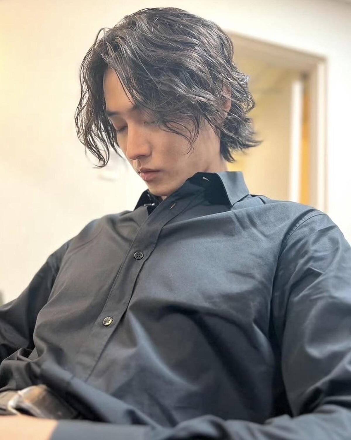 山崎賢人的中長髮以自然的大弧度波浪為重點,透過層次修剪避免頭髮過於厚重。頭頂到兩側的層次設計,讓整體保持蓬鬆立體感,不會塌陷在臉龐兩側;髮尾的部分則略帶翹度,動起來時更有流動感,正好平衡了柔和與俐落,讓人第一眼就感受到獨特氣質。
