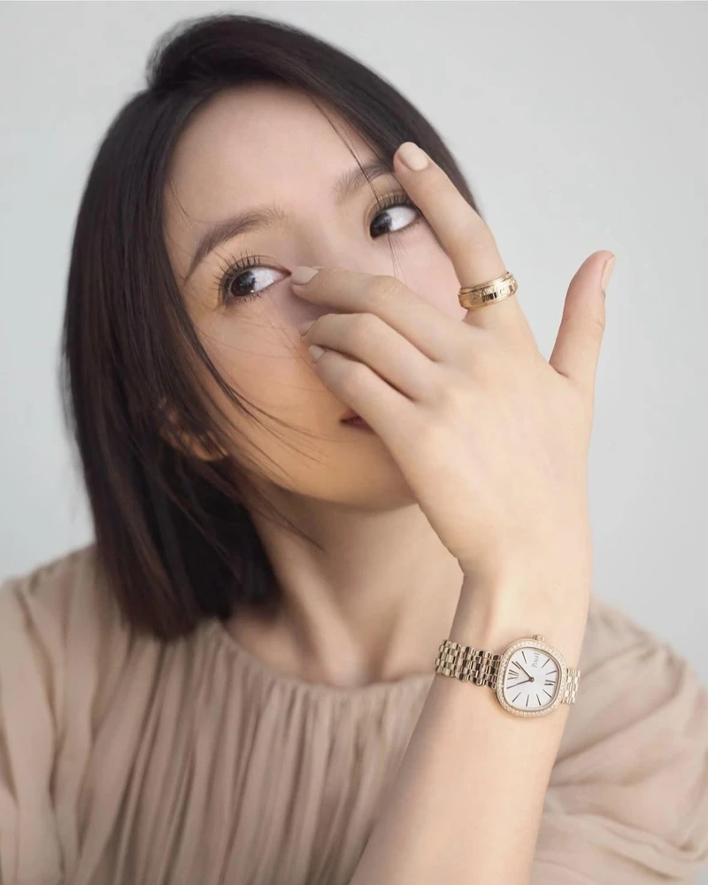 落在耳下的長度,讓五官的線條被襯得更立體。這款短髮乾淨俐落、帶有一點空氣感,髮尾輕輕內收,整體氛圍清爽明亮。林依晨常以裸色底妝、淡金飾品搭配,散發出極簡與純粹的氣息。