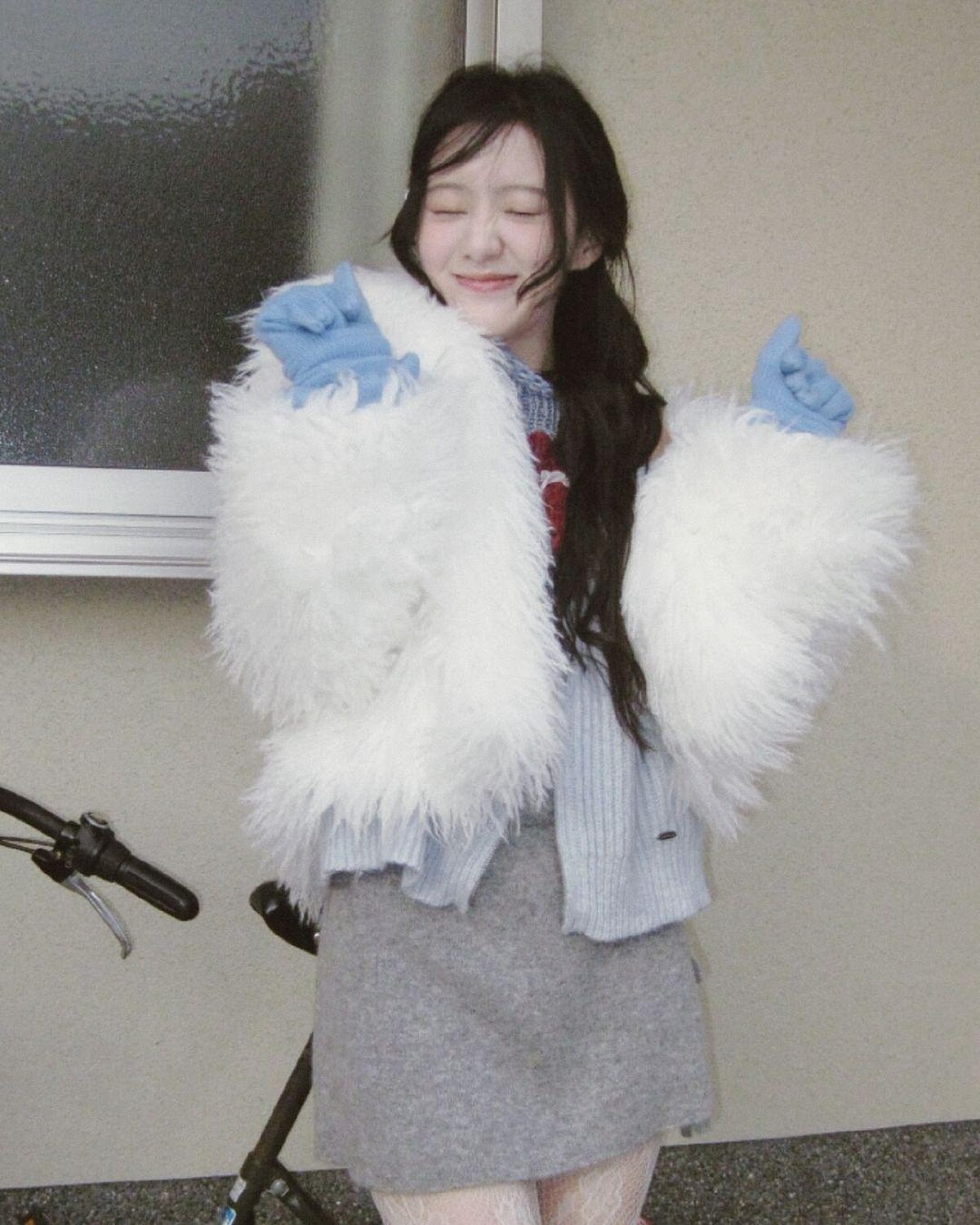鬆綁在一側的低馬尾,髮絲自然垂落肩前,還帶著一點凌亂的卷翹感,雖然是扎髮不過這款髮型的髮根很有空氣感、搭配髮尾稍微內彎,整體給人一種淘氣的冬日女孩氛圍。