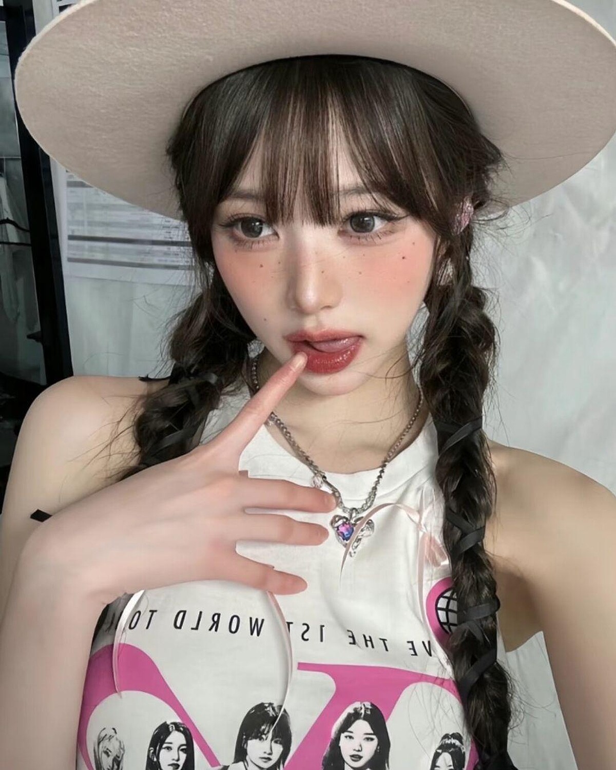 這款復古雙麻花辮本身就自帶減齡效果,辮子編得偏鬆,搭配自然碎瀏海與臉周細髮,整體線條更隨性。加上寬帽或配件後,甜美中多了一點率性感,視覺層次也更豐富!