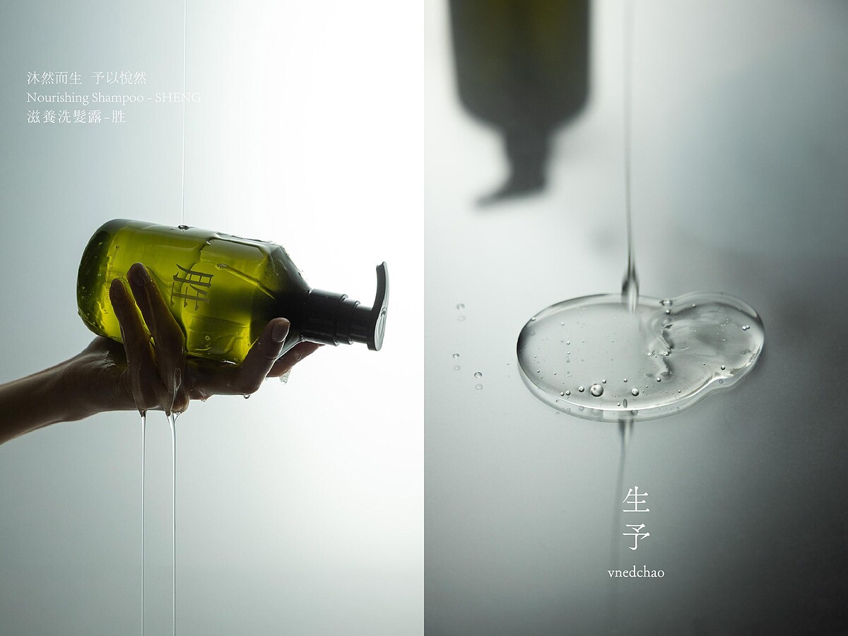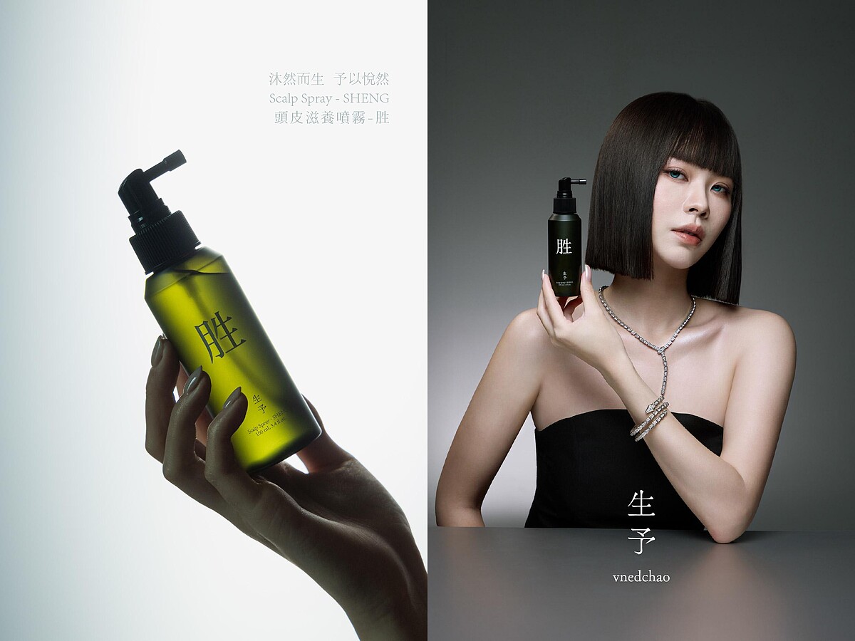 「胜」系列以東方神話「女媧造生」為核心靈感。傳說中,女媧於夜中創造生命,她並不直接塑造萬物,而是讓大地承載養分,使生命在時間中緩慢滲入、自然生成。生予將這樣的概念轉化為養護哲學,不追求快速改變,而是透過日常洗沐,穩定頭皮環境,讓髮根在適合的狀態中自然生長。