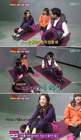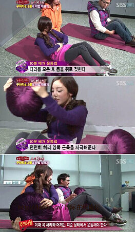 擁有號稱「532黃金比例」美腿的少女時代Tiffany和21吋螞蟻腰的具荷拉,紛紛上節目透露每日的鍛鍊秘訣,甚至不用上健身房,就可以達到像她們一樣的驚人成果。Tiffany和f(x)的Sulli不約而同以類似「踢毽子」的概念創造出獨門瘦身操,天天進行3組的20次循環,魔鬼身材指日可待。如果想擁有具荷拉的小蠻腰也不困難,妳只需要一顆枕頭的輔助就能減去囤積多年的游泳圈。